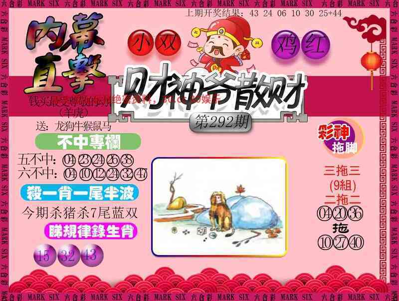 | 292期:九肖【兔鼠龙虎牛狗马蛇羊】开:龙02准 |